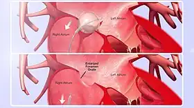 Balloon septostomy is the widening of a foramen ovale, patent foramen ovale (PFO), or atrial septal defect (ASD) via cardiac catheterization (heart cath) using a balloon catheter. This procedure allows a greater amount of oxygenated blood to enter the systemic circulation in some cases of cyanotic congenital heart defect (CHD).