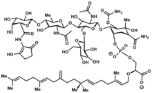 ![]() Chemical structure of moenomycin A, one of the components of bambermycin | |