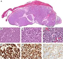 - ↑ East E, Fullen DR, Arps D, Patel RM, Palanisamy N, Carskadon S, et al. (2016). "Morpheaform Basal Cell Carcinomas With Areas of Predominantly Single-Cell Pattern of Infiltration". The American Journal of Dermatopathology. 38 (10): 744–50. doi:10.1097/DAD.0000000000000541. PMID 27043336. S2CID 44948030.