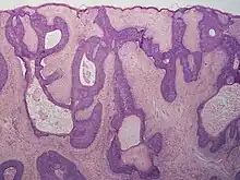 - 1 2 Edelman, Solange; Torres Huamani, Adriana Natalia; Centeno, María Del Valle; Cervini, Andrea Bettina (2022). "Basaloid follicular hamartoma associated with follicular mucinosis and inflammation". Anais Brasileiros de Dermatologia. 97 (1). Elsevier BV: 45–48. doi:10.1016/j.abd.2020.10.012. ISSN 0365-0596. PMC 8799845. PMID 34785065.