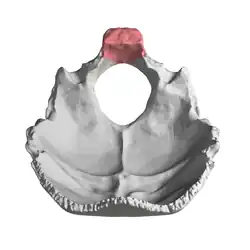Occipital bone. Basilar part shown in red.