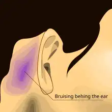 Battle's sign, also known as mastoid ecchymosis, is an indication of fracture of middle cranial fossa of the skull. These fractures may be associated with underlying brain trauma. Battle's sign consists of bruising over the mastoid process as a result of extravasation of blood along the path of the posterior auricular artery.[1] The sign is named after William Henry Battle.[2]