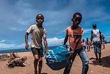 Beach cleaning or clean-up is the process of removing solid litter, dense chemicals, and organic debris deposited on a beach or coastline by the tide, local visitors, or tourists. Humans pollute beaches with materials such as plastic bottles and bags, plastic straws, fishing gear, cigarette filters, six-pack rings, surgical masks and many other items that often lead to environmental degradation.[1] Every year hundreds of thousands of volunteers comb beaches and coastlines around the world to clean this debris. These materials are also called "marine debris" or "marine pollution" and their quantity has been increasing due to anthropocentric activities.[2]