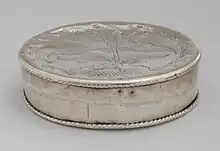 A mouche was generally made of paper, silk or velvet and was applied to the face as a form of make-up. They were kept in a patch box, or boîte à mouches ('box of flies'), and were often fanciful shapes such as hearts or stars. Patch boxes were often ornate, silver boxes, and formed an essential part of a woman's boudoir. Fashion prints from the late seventeenth century show women with an increasing number of beauty marks in a variety of sizes and shapes, placed on the cheeks, chins, and forehead.