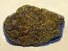 Beltanelliformis is a genus of discoid fossil from the Ediacaran period containing the two species B. brunsae and B. minutae, sometimes ascribed to the Ediacaran Biota. The chemical signature obtained from organically preserved specimens points to a cyanobacterial affinity (cf. Nostoc).[2] Depending on its preservation, it is sometimes referred to as Nemiana or Beltanelloides.[2][3]