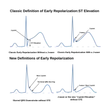 Benign early repolarization (BER) or early repolarization is found on an electrocardiogram (ECG) in about 1% of those with chest pain.[2] It is diagnosed based on an elevated J-point / ST elevation with an end-QRS notch or end-QRS slur and where the ST segment concave up. It is believed to be a normal variant.[2]