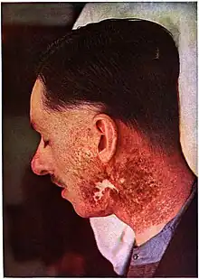 - 1 2 Bernier, J.; Bonner, J; Vermorken, J. B.; Bensadoun, R.-J.; Dummer, R.; Giralt, J.; Kornek, G.; Hartley, A.; et al. (January 2008). "Consensus guidelines for the management of radiation dermatitis and coexisting acne-like rash in patients receiving radiotherapy plus EGFR inhibitors for the treatment of squamous cell carcinoma of the head and neck" (PDF). Annals of Oncology. 19 (1): 142–9. doi:10.1093/annonc/mdm400. PMID 17785763.