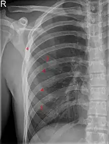 A bifid rib is a congenital abnormality of the rib cage and associated muscles and nerves which occurs in about 1.2% of humans. Bifid ribs occur in up to 8.4% of Samoans.[1] The sternal end of the rib is cleaved into two. It is usually unilateral.[2]