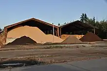 The by-products from the wood processing industry are called wood processing residues and consist of cut offs, shavings, sawdust, bark, and black liquor.[27] Wood processing residues have a total energy content of 5.5 EJ annually.[28] Wood pellets are mainly made from wood processing residues,[m] and have a total energy content of 0.7 EJ.[n] Wood chips are made from a combination of feedstocks,[29] and have a total energy content of 0.8 EJ.[o]