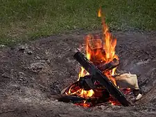 The climate impact of bioenergy varies considerably depending on where biomass feedstocks come from and how they are grown.[43] For example, burning wood for energy releases carbon dioxide; those emissions can be significantly offset if the trees that were harvested are replaced by new trees in a well-managed forest, as the new trees will absorb carbon dioxide from the air as they grow.[44] However, the establishment and cultivation of bioenergy crops can displace natural ecosystems, degrade soils, and consume water resources and synthetic fertilisers.[6][7]