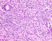 - Fibrosarcoma can be very similar, although nerve fibers and the herringbone pattern tend to be longer and more well developed.