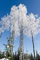 White-barked birches in particular are cultivated as ornamental trees, largely for their appearance in winter. The Himalayan birch, Betula utilis, especially the variety or subspecies jacquemontii, is among the most widely planted for this purpose. It has been cultivated since the 1870s, and many cultivars are available, including 'Doorenbos', 'Grayswood Ghost' and 'Silver Shadow'; 'Knightshayes' has a slightly weeping habit. Other species with ornamental white bark include Betula ermanii, Betula papyrifera, Betula pendula and Betula raddeana.[16]