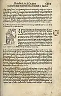 The Lower Rhine city of Cologne appears to have experienced an outbreak of Black Death as early as 1347, for which the local Cronica vander hiliger stat Coellen (1499) records: "In the said year [1347] and the two years after, there was a great dying throughout the world, both amongst the pagans and the Christians."[9] Two pages later, brief reports are given on the "Flagellant Brothers" (Geysellbroederen) or "Cross Bearers" (Cruysdreger), and the burning of the Jews,[c] without linking these three events (the same juxtaposition without connection happens in the Nuremberg Chronicle of Hartmann Schedel).[9] On the other hand, a chronicle on the Duchy of Guelders, written in Nijmegen around 1459, does link all three events: