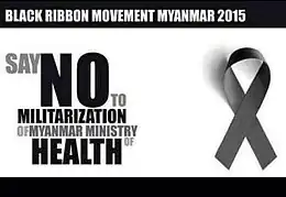 | Motto: Say no to militarisation of Myanmar Ministry of Health. Black Ribbon Movement Myanmar 2015 | |