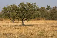 The earliest primate ancestors of modern humans most likely had pale skin, like our closest modern relative—the chimpanzee.[30][31][32][33][34] About 7 million years ago human and chimpanzee lineages diverged, and between 4.5 and 2 million years ago early humans moved out of rainforests to the savannas of sub-Saharan Africa.[26][35] They not only had to cope with more intense sunlight but had to develop a better cooling system. It was harder to get food in the hot savannas and as mammalian brains are prone to overheating—5 or 6 °C rise in temperature can lead to heatstroke—there was a need for the development of better heat regulation. The solution was sweating and loss of body hair.[26]