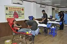 India has government-funded and private blood donation organisations. Some major organisations operate in many regions throughout the country while others are regional and operate with local support. Along with conducting blood donation camps, they also raise awareness on voluntary blood donation and public health. Most organisations maintain online portals or physical registry where donors can enter their details and receive updates when blood donation drives are conducted; this also facilitates a network between blood donors and organisations/hospitals.[24] Apart from such organisations, major hospitals in the country have their own blood banks where blood donation is conducted within the facility. As of 2015, there were 2.2 blood banks per million population in the country.[25] As per a 2016 study, around 51% of the 2493 blood banks surveyed across the country had component separation facility.[26]