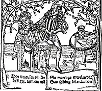 The Talmud recommended a specific day of the week and days of the month for bloodletting in the Shabbat tractate,[26] and similar rules, though less codified, can be found among Christian writings advising which saints' days were favourable for bloodletting. During medieval times bleeding charts were common, showing specific bleeding sites on the body in alignment with the planets and zodiacs.[21] Islamic medical authors also advised bloodletting, particularly for fevers. It was practised according to seasons and certain phases of the Moon in the lunar calendar. The practice was probably passed by the Greeks with the translation of ancient texts to Arabic and is different than bloodletting by cupping mentioned in the traditions of Muhammad. When Muslim theories became known in the Latin-speaking countries of Europe, bloodletting became more widespread. Together with cautery, it was central to Arabic surgery; the key texts Kitab al-Qanun and especially Al-Tasrif li-man 'ajaza 'an al-ta'lif both recommended it. It was also known in Ayurvedic medicine, described in the Susruta Samhita.