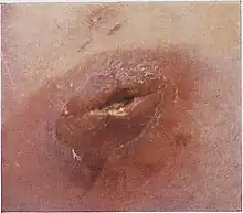 - 1 2 Blume JE, Levine EG, Heymann WR (2003). "Bacterial diseases". In Bolognia JL, Jorizzo JL, Rapini RP (eds.). Dermatology. Mosby. p. 1126. ISBN 0-323-02409-2.