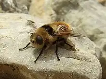 A botfly,[1] also written bot fly,[2] bott fly[3] or bot-fly[4] in various combinations, is any fly in the family Oestridae. Their life cycles vary greatly according to species, but the larvae of all species are internal parasites of mammals. Largely according to species, they also are known variously as warble flies, heel flies, and gadflies. The larvae of some species grow in the flesh of their hosts, while others grow within the hosts' alimentary tracts.