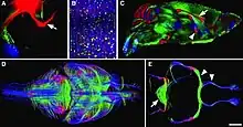 - 1 2 Stefanie Hampel; Phuong Chung; Claire McKellar; Donald Hall; Loren Looger; Julie Simpson (February 2011). "Drosophila Brainbow: a recombinase-based fluorescence labeling technique to subdivide neural expression patterns". Nature Methods. 8 (3): 253–260. doi:10.1038/nmeth.1566. PMC 3077945. PMID 21297621.