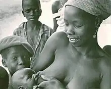 Sierra Leone has the highest infant mortality rate in the world. During a goodwill trip to the country, actress Salma Hayek breastfed on-camera a hungry week-old infant whose mother could not produce milk.[12] She said she did it to reduce the stigma associated with breastfeeding and to encourage infant nutrition.[13]