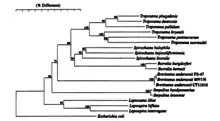 Brevinema andersonii was first identified in 1987 by Anderson F. John, Russell C. Johnson, Louis A.Magnarell, Fred W. Hyde, and Theodore G Andreadis in blood and tissues from Blarina brevicauda (short-tailed shrew) and Peromyscus leucopus (white-footed mouse).[2] Initially thought to be associated with Borrelia burgdorferi this organism was finally brought to light with more advanced growth mediums. Upon electron microscopy of cultures from this medium, a distinct morphology stood out from the rest.[2] It was not until 1995 that a push for this organism to be found as a new species. This push came as an article from the Journal of Systematic Bacteriology that exclaimed data supports this organism to be its own genus species was broadcast. Written by D.L. Defosse, R. C. Johnson, B. J. Paster, F. E. Dewhirst, they found genomic evidence to support their claim that Brevienma andersonii was its own deep rooted spirochete. Their findings showed that this organism was around 75% similar in genome to other known spirochetes, this showed that B. andersonii was in a taxon of its own.[1][2]