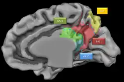 - ↑ Kobayashi, Y.; Amaral, D. G. (2000-10-23). "Macaque monkey retrosplenial cortex: I. three-dimensional and cytoarchitectonic organization". The Journal of Comparative Neurology. 426 (3): 339–365. doi:10.1002/1096-9861(20001023)426:3<339::aid-cne1>3.0.co;2-8. ISSN 0021-9967. PMID 10992242.
