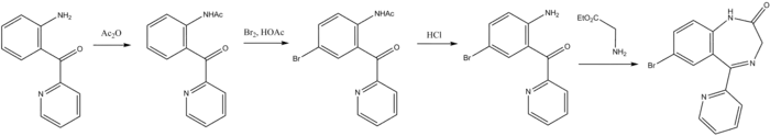 - ↑ Sanal (8 January 2012). "Synthesis Of Drugs: Laboratory Synthesis Of Bromazepam".