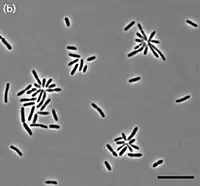 Bryocella elongata is a bacterium, a type species of genus Bryocella. Cells are Gram-negative, non-motile pink-pigmented rods that multiply by normal cell division and form rosettes.[1] The type strain is SN10(T).[2][3][4][5] B. elongata was first isolated in 2011 from a methanotropic enrichment culture.[6]