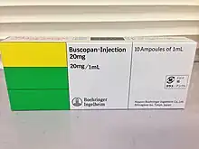 2. 1 2 "Buscopan- n-butylscopolammonium bromide injection". DailyMed. 8 June 2020. Retrieved 16 October 2020.