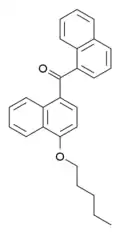- ↑ Dziadulewicz EK, Bevan SJ, Brain CT, Coote PR, Culshaw AJ, Davis AJ, et al. (August 2007). "Naphthalen-1-yl-(4-pentyloxynaphthalen-1-yl)methanone: a potent, orally bioavailable human CB1/CB2 dual agonist with antihyperalgesic properties and restricted central nervous system penetration". Journal of Medicinal Chemistry. 50 (16): 3851–3856. doi:10.1021/jm070317a. PMID 17630726.
