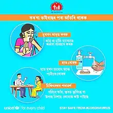 The Government of Assam has started a YouTube channel for spreading awareness among public regarding the precautions to be taken against COVID-19.[37] Also, the government has launched a mobile application called COVAAS for users to get information and updates regarding the COVID-19 in Assam. The app also incorporates application of lockdown epass, live help desk and many more.[38] The government with the help of National Informatics Centre (NIC) of Assam, has launched an app called COVID Suraksha to monitor the status of each home quarantined persons.[39][40]