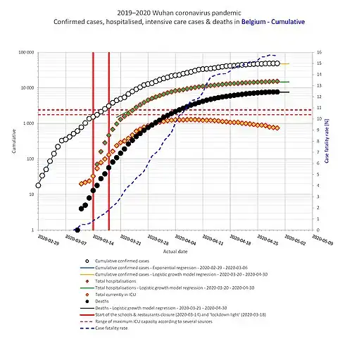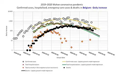 - ↑ "The trends of the last days seem to persist". info-coronavirus.be. 23 April 2020. Archived from the original on 29 April 2020. Retrieved 29 April 2020.