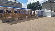 Initially, the authorities strongly recommended that all events with more than one thousand people be cancelled or postponed, but on 11 March the limit was lowered to one hundred people;[101] this recommendation covers March, but can be extended if necessary. Among others, football (including the Danish Superliga) and handball matches were without spectators or entirely cancelled, the Dansk Melodi Grand Prix did not have an audience, concerts and conferences were cancelled or postponed, and the Euroschoolsport tournament at Esbjerg High School, where students and teachers from much of Europe were supposed to meet, was cancelled.[102][103][104][105][106][107] The Folketing cancelled some of its regular meetings and hearings, and when voting a clearing system will be used to avoid having more than 95 members in the main chamber at any one time.[108]