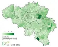 The COVID-19 pandemic in Belgium has resulted in 4,894,090[148] confirmed cases of COVID-19 and 34,339[148] deaths.