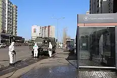 The COVID-19 pandemic in Kazakhstan was a part of the worldwide pandemic of coronavirus disease 2019 (COVID-19) caused by severe acute respiratory syndrome coronavirus 2 (SARS-CoV-2). The virus was confirmed to have reached Kazakhstan on 13 March 2020 after two Kazakh citizens in Almaty returned from Germany. That same day, two more cases were confirmed, with one female arriving from Italy in Astana and the other from Germany in Almaty as well.[3] Following the outbreak, on 15 March 2020, President Kassym-Jomart Tokayev declared a state of emergency that was initially set to last until 15 April 2020. However, measures were prolonged in order to curb the transmission of the virus, leading to many notable holidays such as Nowruz and the Victory Day being cancelled.[4][5] On 19 March 2020, a strict quarantine was placed on the cities of Astana and Almaty, where most of the cases had been reported.[6] On 30 March 2020, Atyrau and five cities in Karaganda Region went under a lockdown.[7]