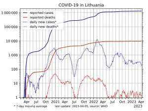 - ↑ "Coronavirus: Lithuania's daily infection count jumps to 855". 23 March 2021.
