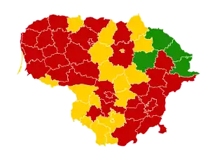 - ↑ "Sprendimas dėl savivaldybių, priskiriamų žaliajai, geltonajai ir raudonajai zonai, nustatymo" (PDF). sam.lrv.lt (in Lithuanian). Retrieved 25 October 2020.