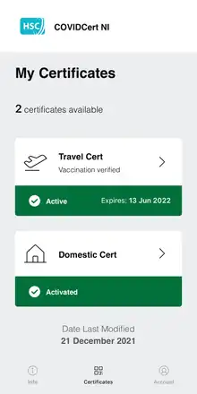 - ↑ "Covid-19: Stormont ministers vote for Covid passports". BBC News. 17 November 2021. Retrieved 17 November 2021.