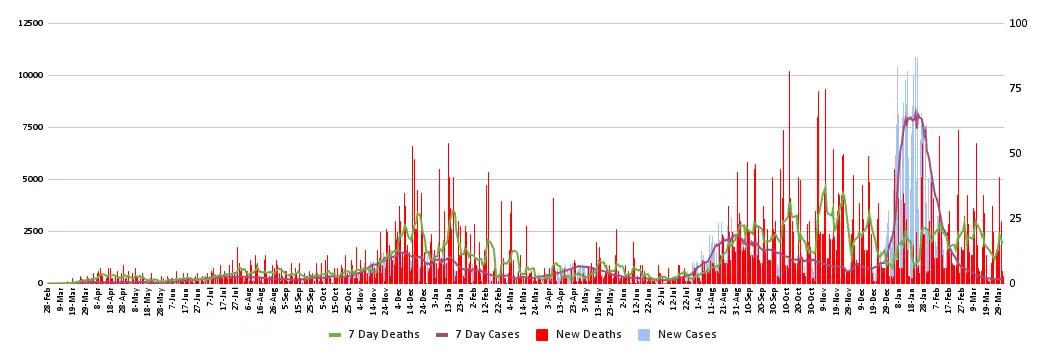 | Date | New Cases | Total Cases | New Deaths | Total Deaths | Doubling time of cases in days | Notes |