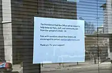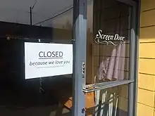 ![]() Sign on a storefront in Portland, Oregon, noting a temporary closure due to the ongoing COVID-19 pandemic | |