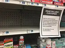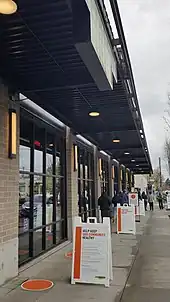 School closures and event cancellations prompted people to stock up on groceries. Long lines were seen at grocery stores and food pantries throughout the Portland metropolitan area.[40] Local cannabis dispensaries saw an increased demand as customers stocked up in case stores were forced to close temporarily.[41] The Oregon Liquor Control Commission (OLCC) permitted stores to operate via curbside pick-up and home delivery temporarily.[42][43][44]