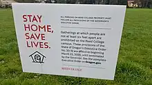 Portland State University canceled in-person final exams,[147] and eliminated in-person classes for the spring term, opting for distance learning.[148] The University of Portland moved to online instruction and canceled all sports games and practices for the spring term.[149][150] Lewis and Clark College, Linfield College, and Willamette University also implemented distance learning.[151]