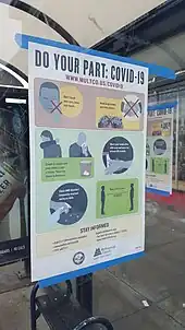 - ↑ Theen, Andrew (April 2, 2020). "TriMet placing 'don't sit here' signs on bus seats, limiting passengers to 15 per bus". The Oregonian. Retrieved April 17, 2020.