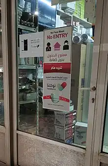 - ↑ ""البلديات" توجّه بإغلاق أماكن الألعاب والأنشطة الترفيهية في المجمّعات التجارية، وتعقيم وتهوية أماكن تقديم الأطعمة والمشروبات" (in Arabic). 22 March 2020. Retrieved 4 October 2020.