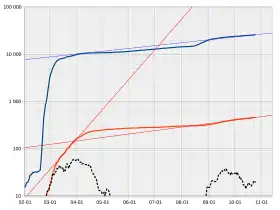 South Korea introduced what was considered one of the largest and best-organised epidemic control programs in the world, along with Singapore, Taiwan, and Vietnam.[11][12][13] Various measures have been taken to mass test the population for the virus, and isolate any infected people as well as trace and quarantine those they had contact with, without any further lockdown.[14][15] The rapid and extensive testing undertaken by South Korea has been judged successful in limiting the spread of the outbreak, without using the drastic measure of locking down entire cities.[14][16][17] Despite these successful measures, however, a significant rise in the number of new infections has occurred beginning in August 2020, with clusters being linked to Protestant churches in the Seoul Metropolitan Area.[18][19] Another rise began in the third week of November, and Seoul has since entered a third wave of infections.[20] On 24 November, the government raised the social distancing level in Seoul to level 2.[21] On 29 November, the social distancing level in other areas of the country was raised to 1.5.[22] In December, it was raised to level 2.5 in some metropolitan areas and 2 in other areas.[23]