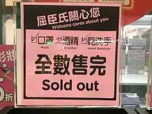 On 24 January, the Taiwanese government announced a temporary ban on the export of face masks for one month to secure a supply of masks for its own citizens.[185][186] The ban was extended twice; on 13 February until the end of April,[187] and on 13 April until the end of June.[188] On 6 February, the government instituted a mask rationing system, requiring citizens to present their National Health Insurance card.[189][190] Prior to its implementation, the system was extended to holders of the Alien Resident Certificate, and people with valid entry permits.[191] People with odd-numbered identity documents were permitted to buy masks on Mondays, Wednesdays, and Fridays; those with even-numbered identity documents were to buy masks on Tuesdays, Thursdays, and Saturdays; anyone is allowed to buy masks on Sundays. Adults were allowed to buy two masks each visit and children four, with the restriction that a minimum of seven days must elapse since the last purchase. The date restriction for children under thirteen years of age was revoked on 27 February.[192][193] Starting on 5 March, adults were permitted to buy three masks weekly; the children's quota was raised to five.[194] After 12 March, masks were available for preorder online.[195] In April, the mask rationing system was revised, so that adults could buy nine masks every two weeks. From 9 April, the specific date restrictions are to be removed. In addition, Taiwanese nationals can send 30 masks every two months overseas to first or second-degree relatives.[196][197] Taiwan's Ministry of Foreign Affairs assumed responsibility for distribution of masks to families of diplomats.[198]