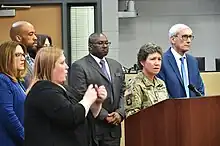 - ↑ "Gov. Tony Evers issues 'Safer At Home' order closing non-essential businesses". wisn.com. Archived from the original on March 23, 2020. Retrieved March 23, 2020.