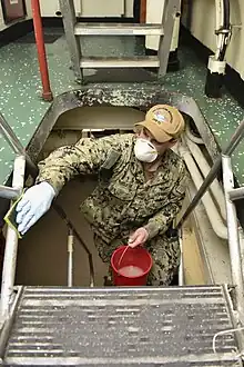 - ↑ Kasper MR, Geibe JR, Sears CL, Riegodedios AJ, Luse T, von Thun AM, et al. (17 December 2020). "An Outbreak of Covid-19 on an Aircraft Carrier". New England Journal of Medicine. 383 (25): 2417–2426. doi:10.1056/NEJMoa2019375. PMC 7675688. PMID 33176077.