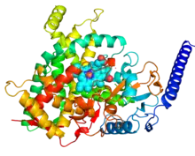 - ↑ Michaels S, Wang MZ (August 2014). "The revised human liver cytochrome P450 "Pie": absolute protein quantification of CYP4F and CYP3A enzymes using targeted quantitative proteomics". Drug Metab Dispos. 42 (8): 1241–51. doi:10.1124/dmd.114.058040. PMC 4109210. PMID 24816681.